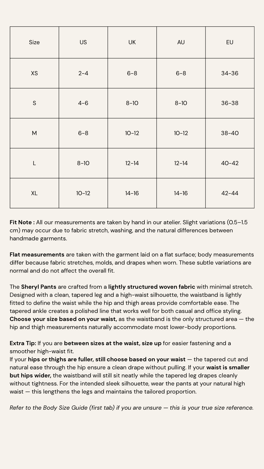 - Recommended: wear at natural high waist for the clean, elongated silhouette