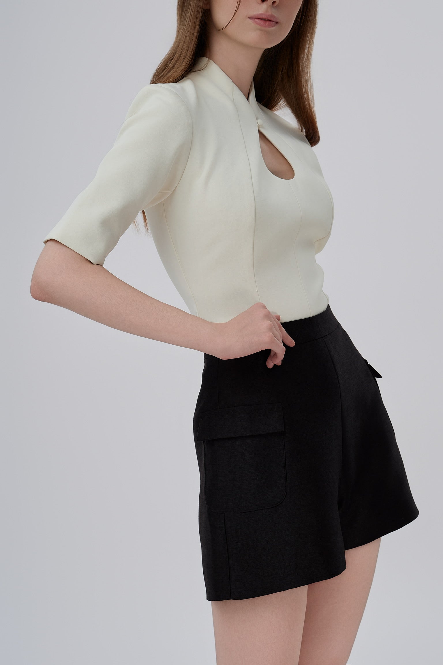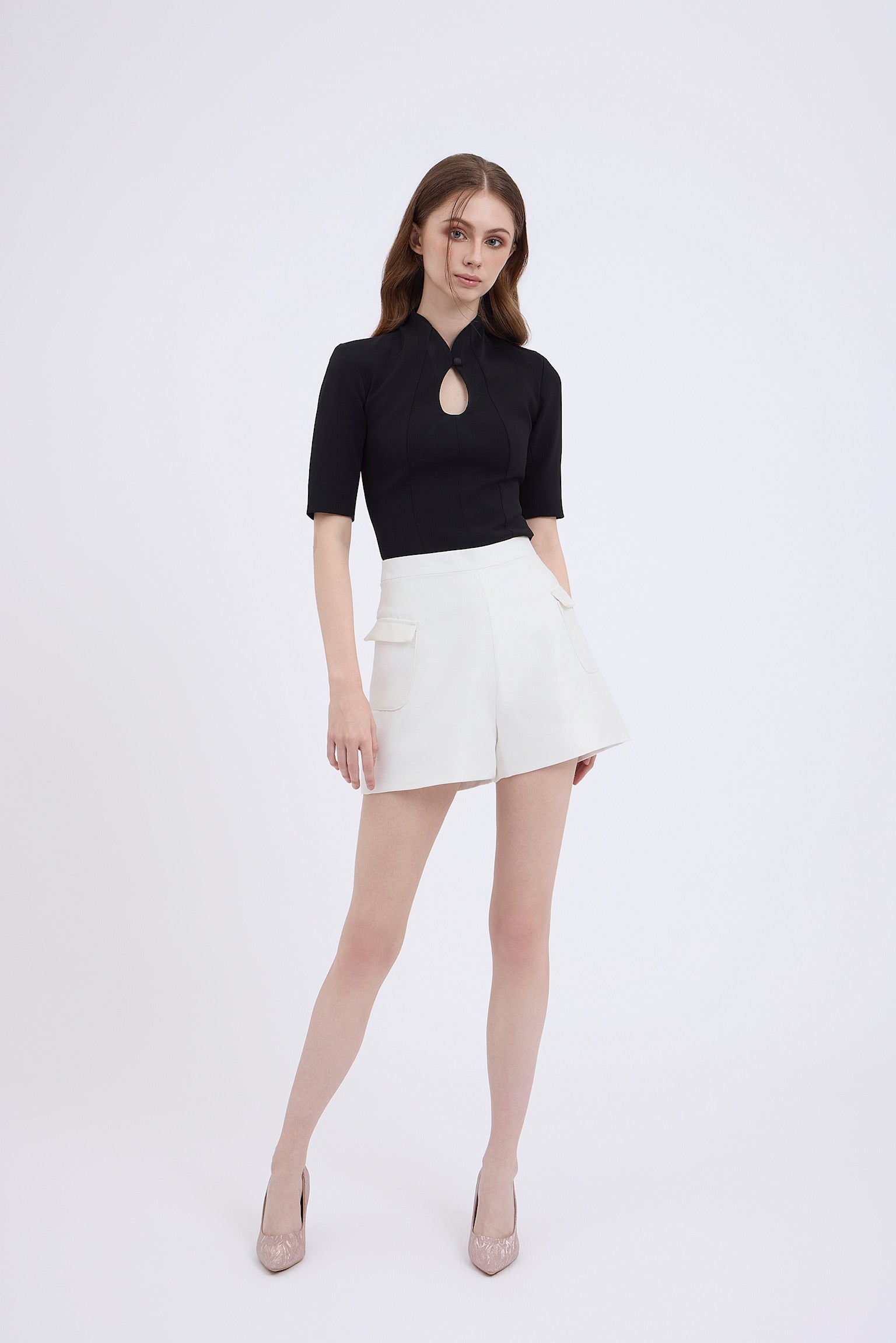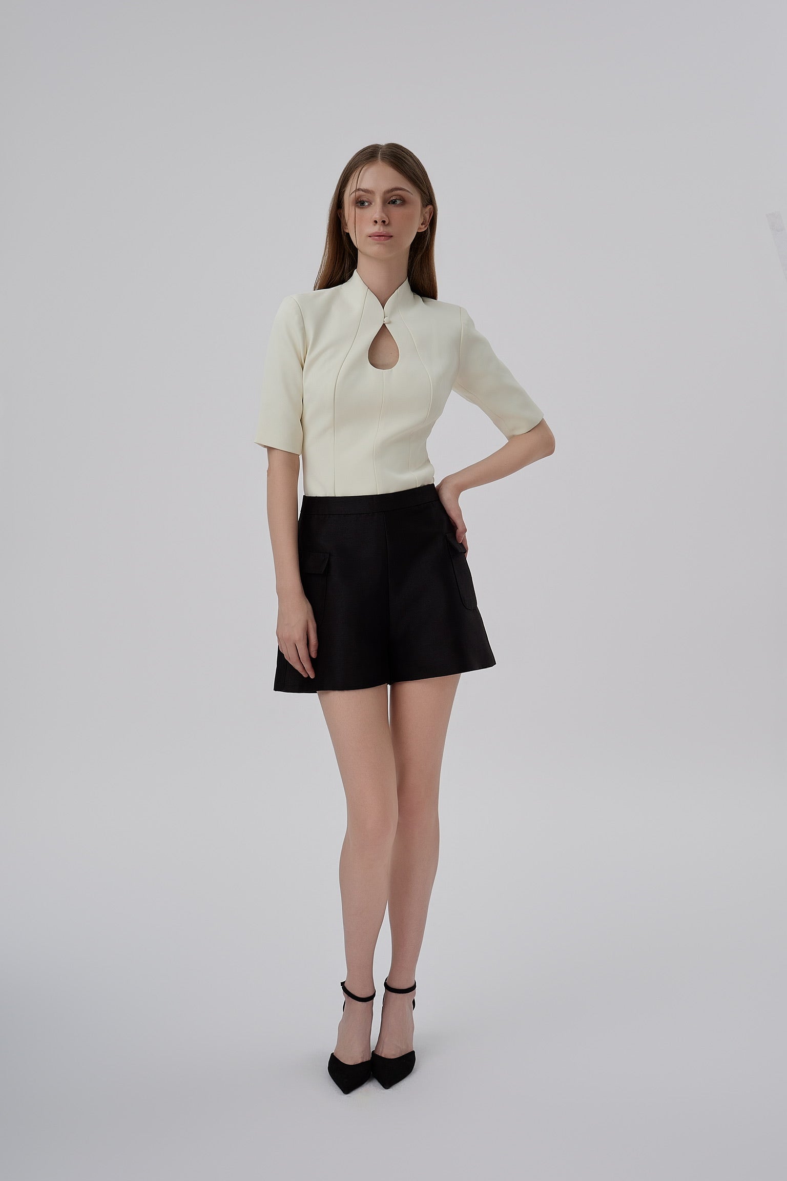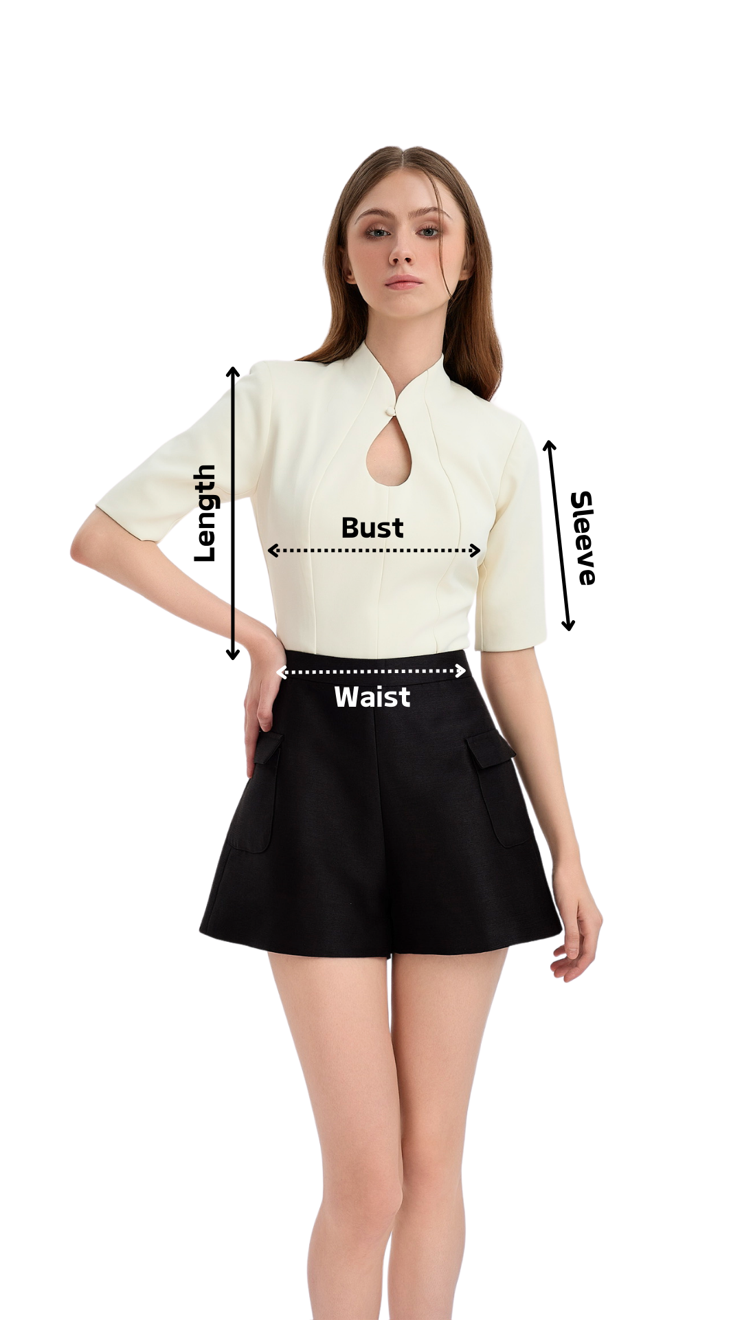 Shaped like a raindrop. Poised like sculpture. The Amoy Blouse takes quiet inspiration from Singapore’s own Kinetic Rain — the iconic installation that greets travelers with suspended grace at Changi Airport.