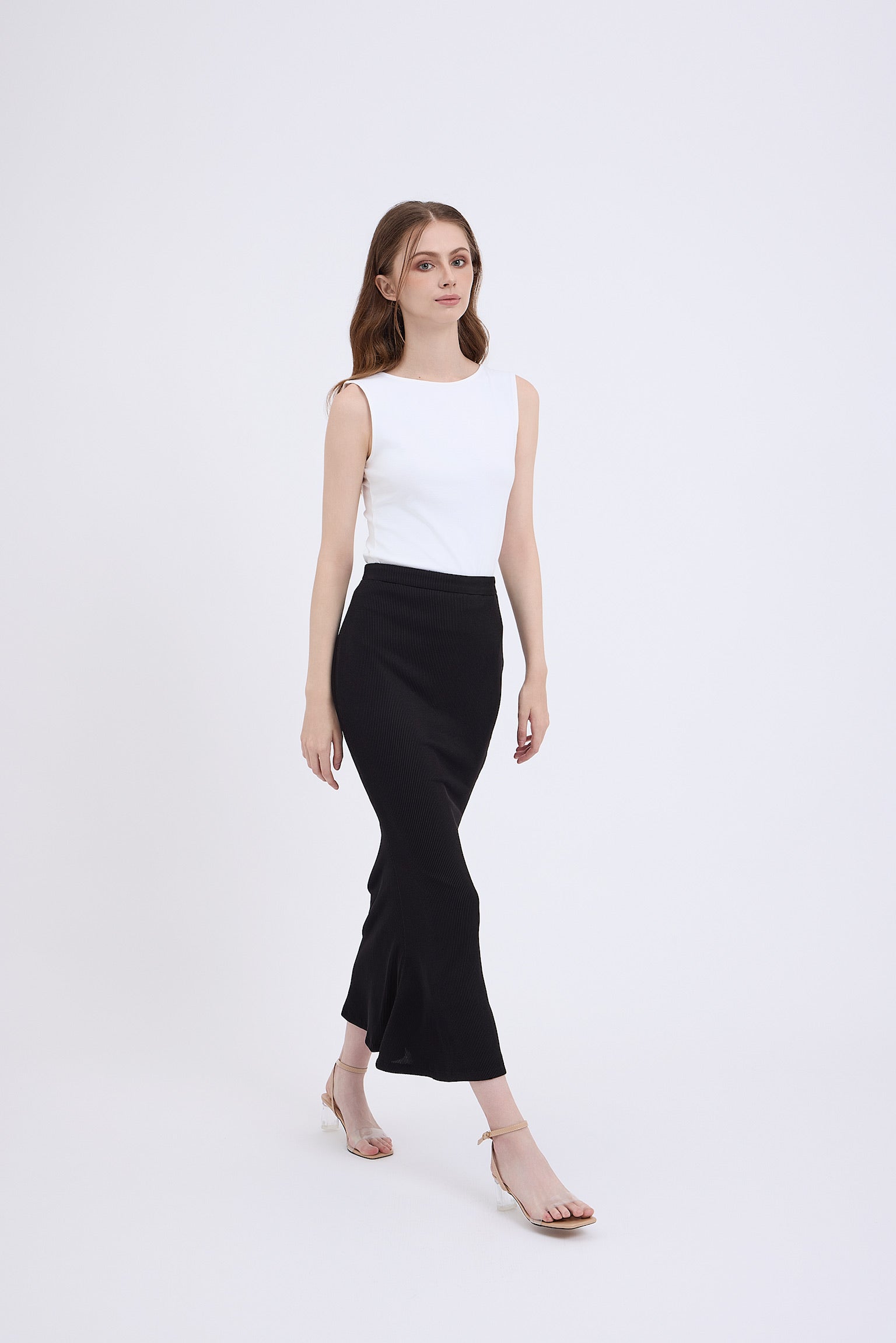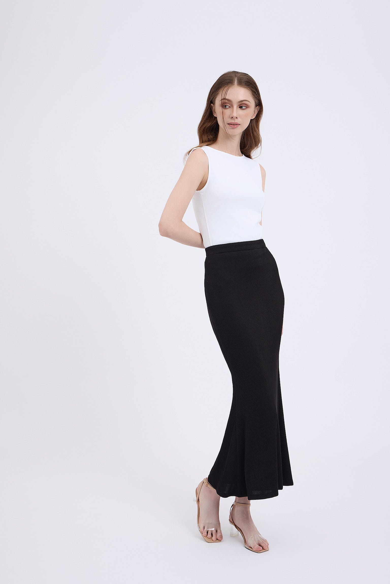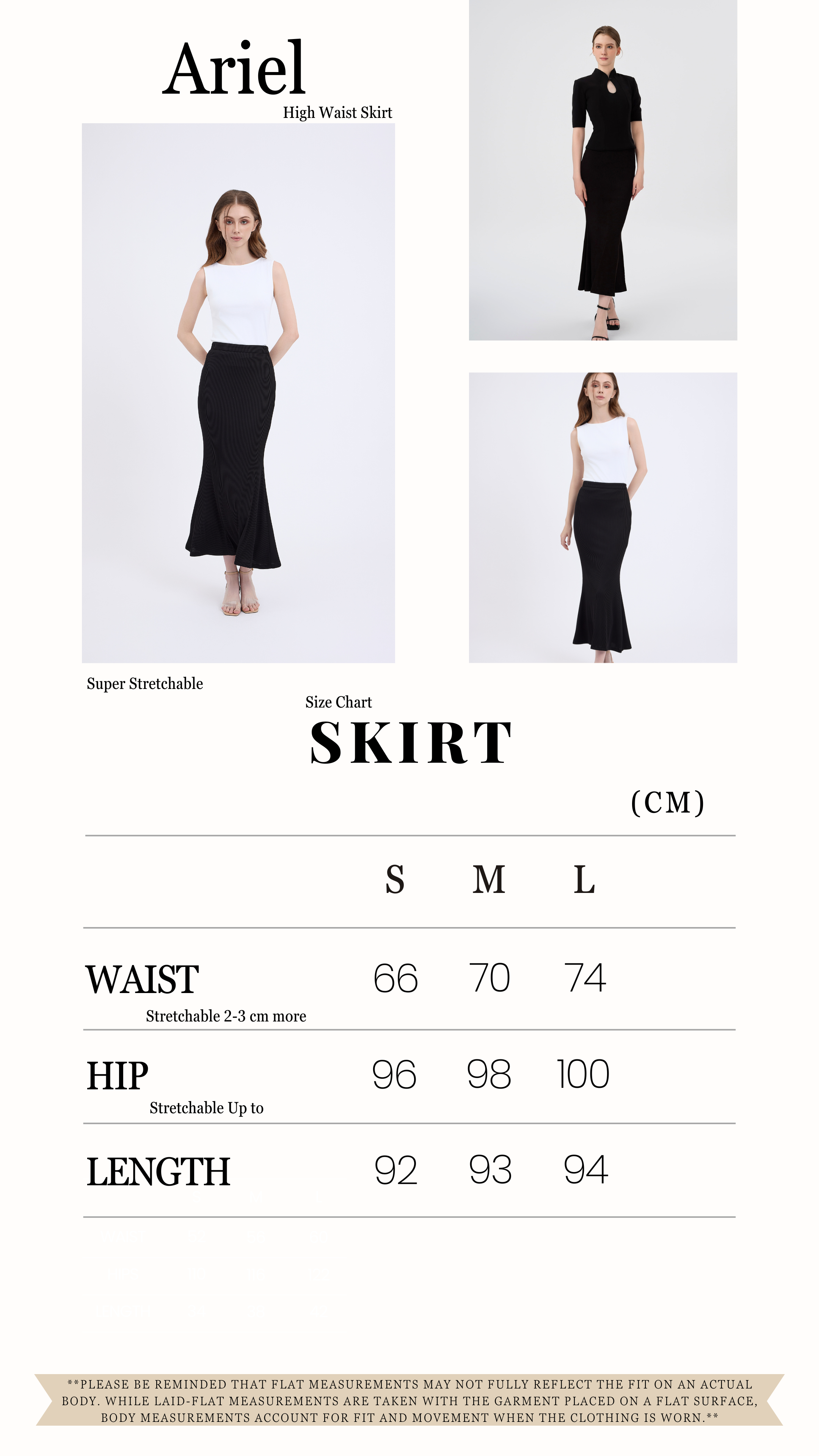 Ariel is designed to sculpt softly and move effortlessly. Cut in a flattering high-rise silhouette, this skirt skims the hips before flaring gently at the hem — elongating the form with quiet confidence.