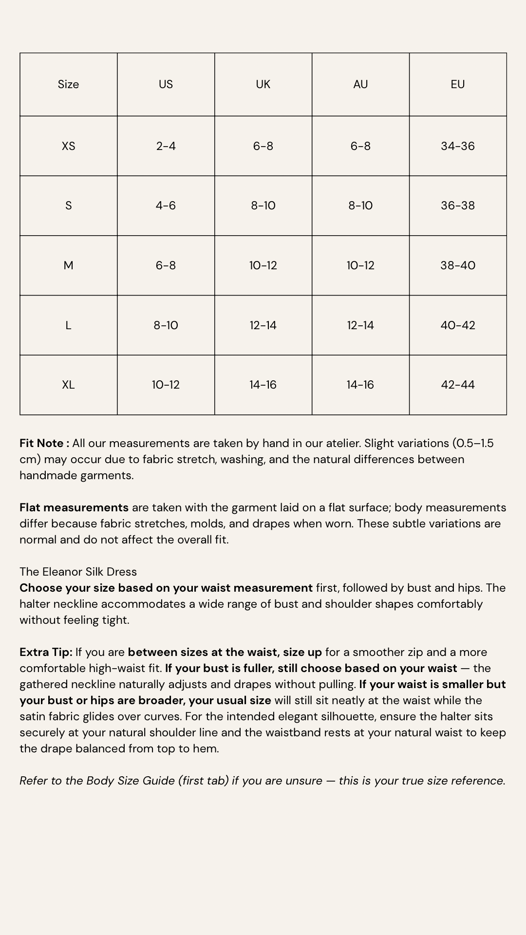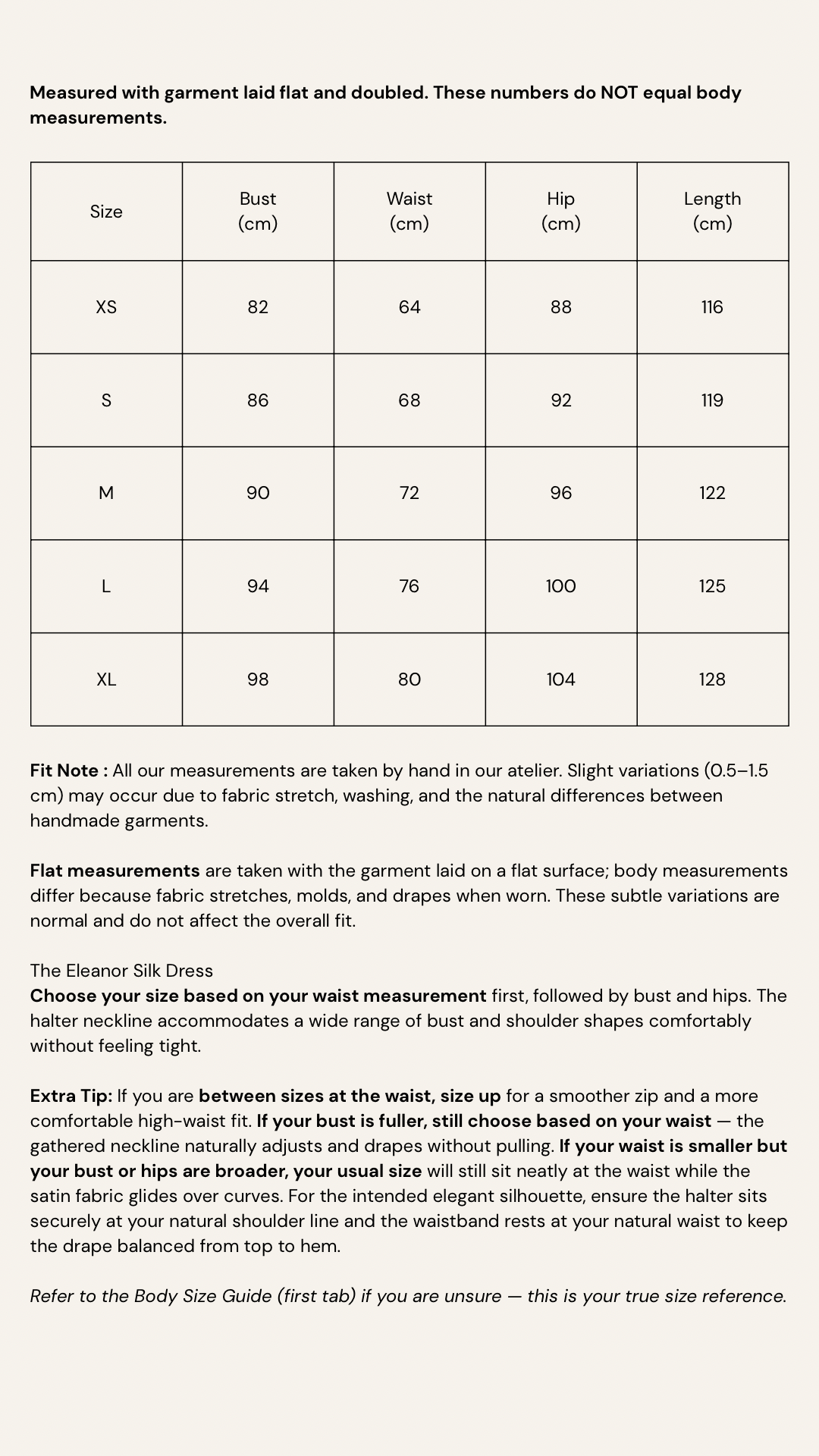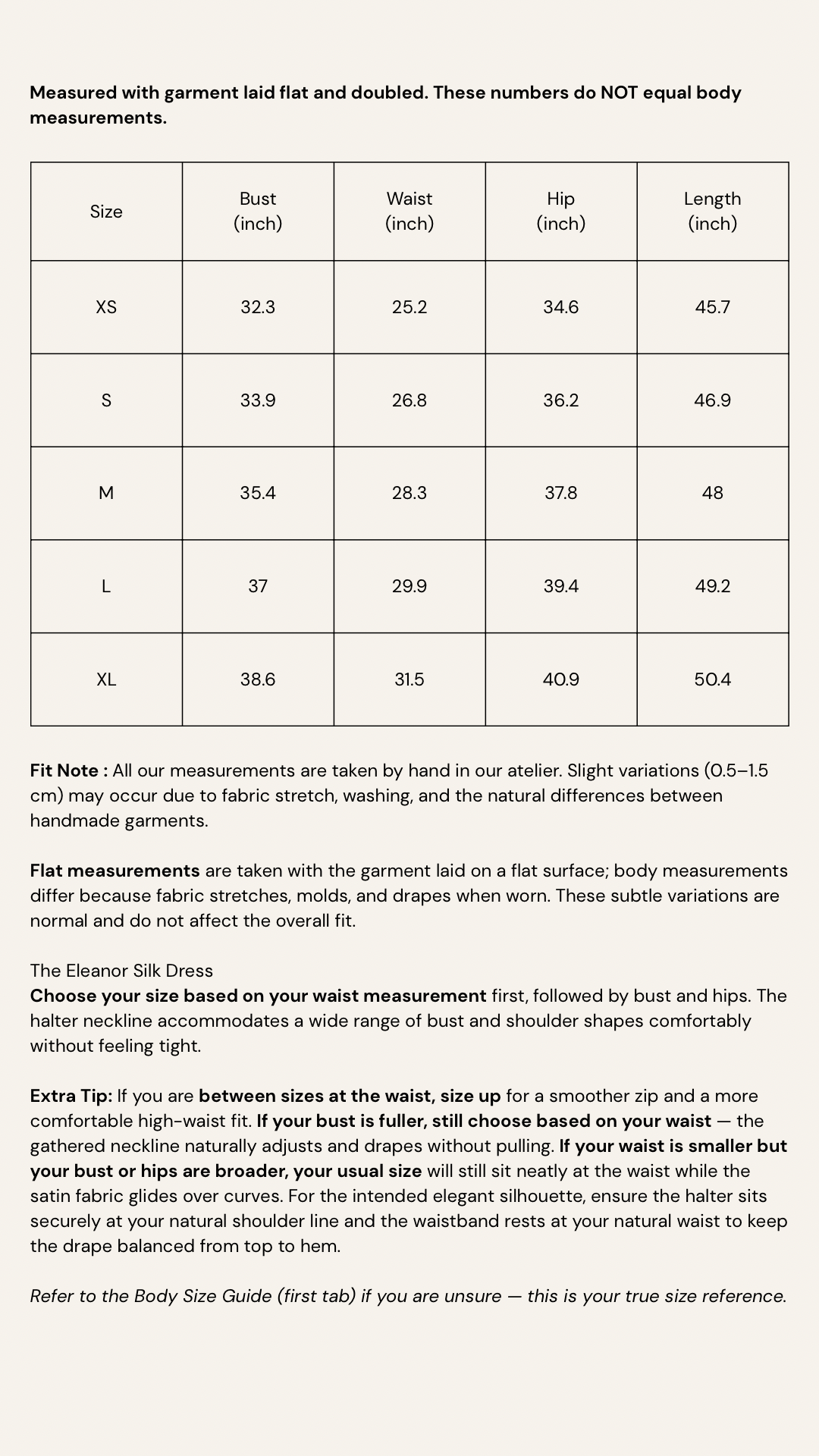 The Eleanor Silk Dress is crafted from a soft, fluid woven satin that drapes gracefully over the body. The gathered halter neckline creates an elongated, elegant line, while the fitted waist shapes the silhouette. The skirt falls into a clean A-line for effortless movement and comfort. Designed to feel refined and lightweight, Eleanor offers the look of silk with modern ease.
