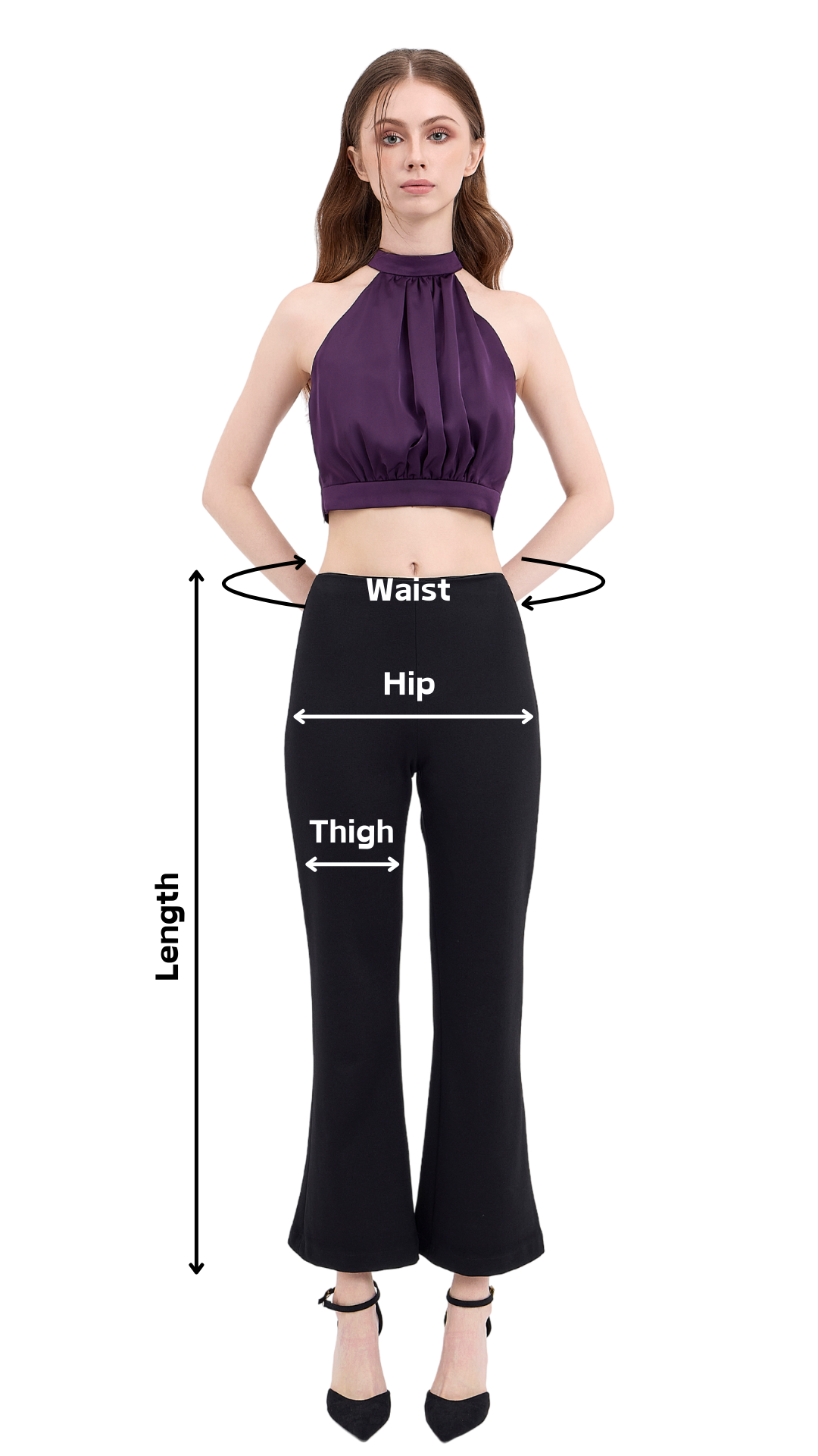 Lily — High Waist pants offer the perfect blend of comfort and style. Crafted from stretchy cotton-polyester blend fabric, provide ease of movement and a flattering fit, conforming to your body’s contours while maintaining their shape throughout the day. Whether dressed up with a blouse and heels for a night out or paired with a casual top and sneakers for a relaxed daytime vibe, flare-leg pants are a versatile wardrobe staple that combines comfort with on-trend style.