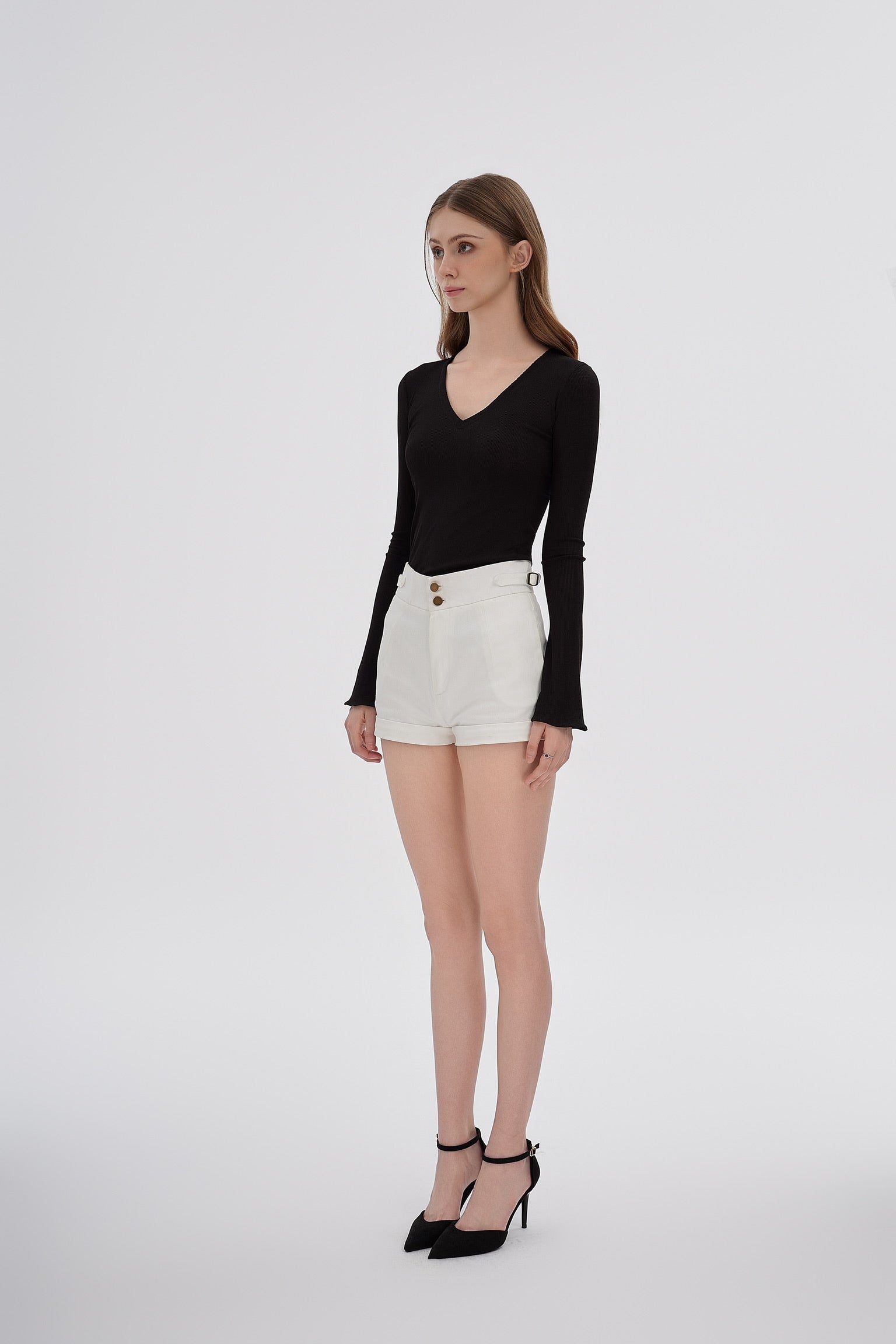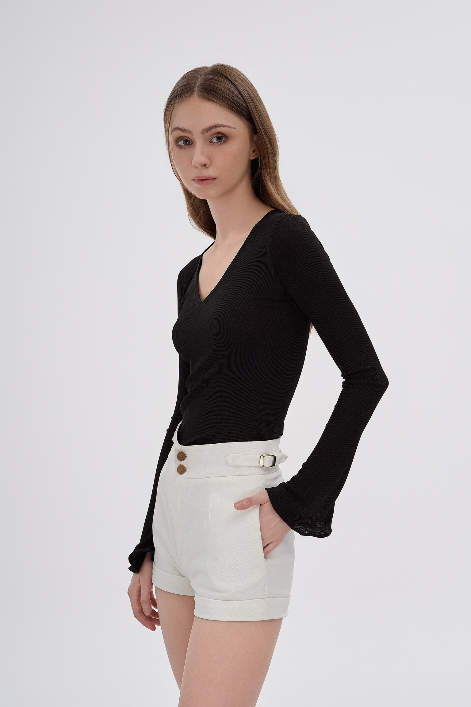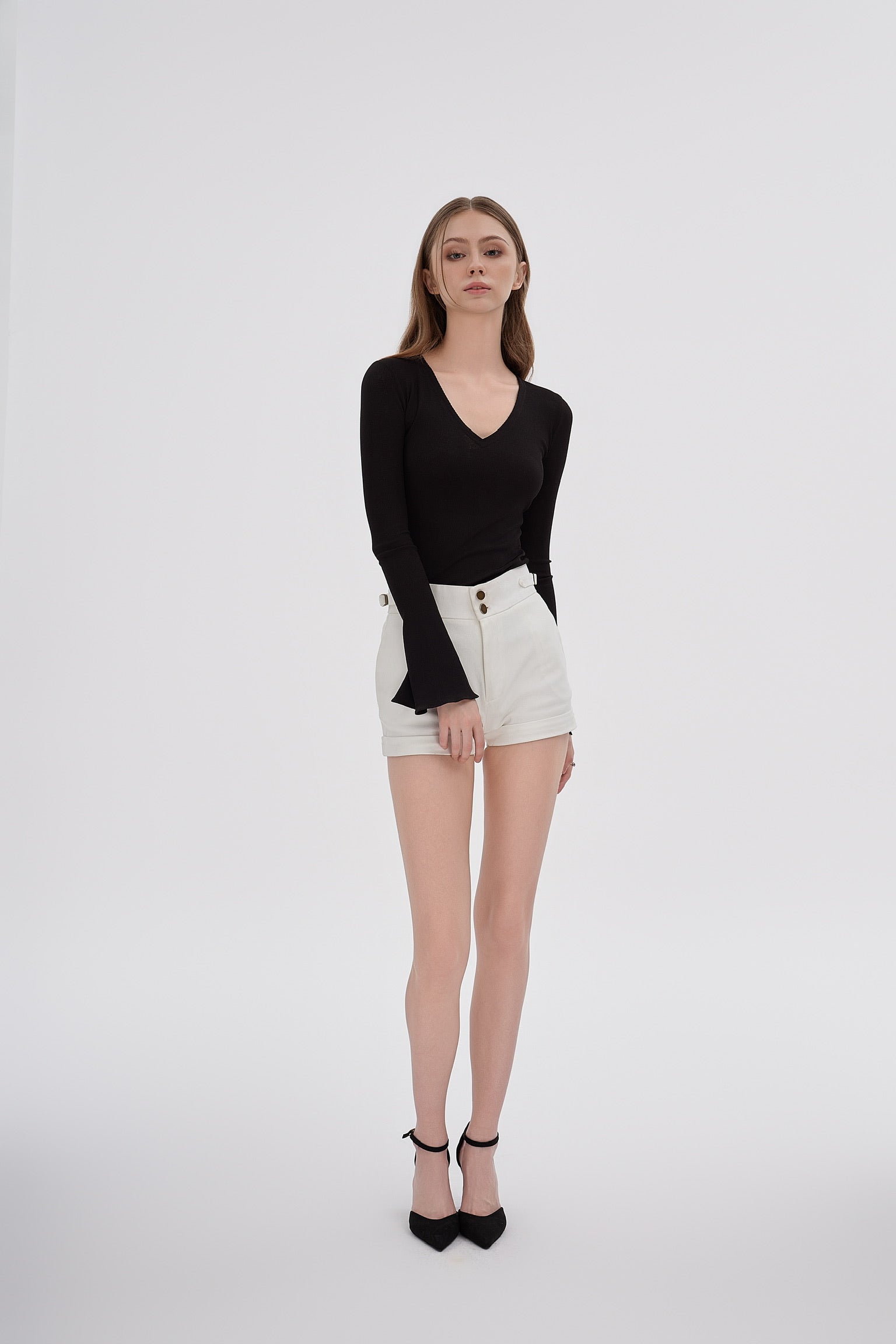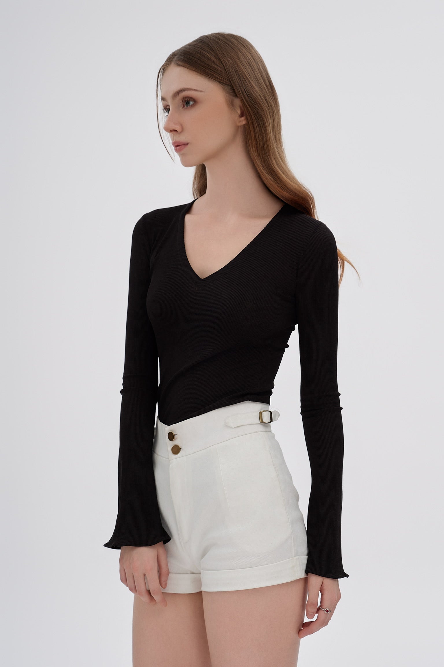 The Lily Casual Top is simplicity, sculpted. Made from a supple knit of 95% cotton and 5% spandex, it clings with comfort and breathes with ease—never stiff, never slouchy. The deep V neckline frames the décolletage, while subtly flared sleeves add a whisper of movement and quiet intent.