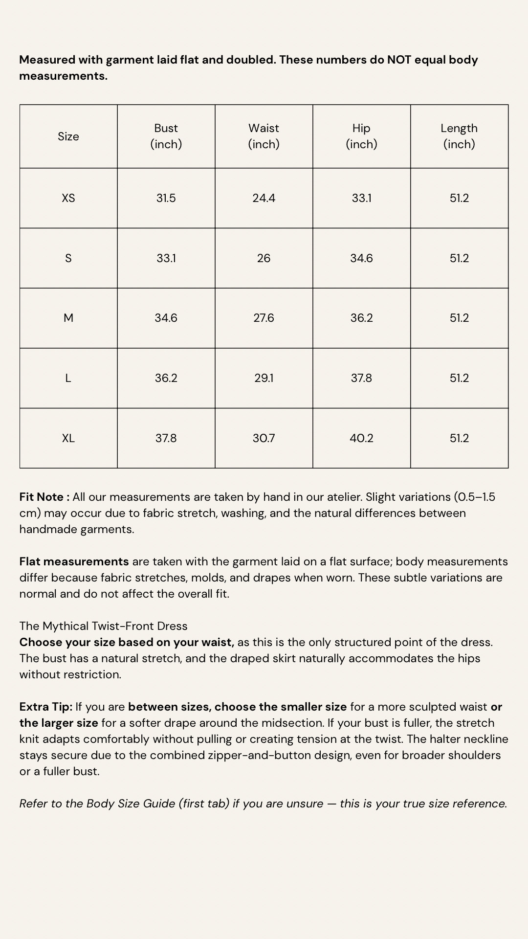 The Mythical Twist-Front Dress is crafted from a soft, stretch-knit blend that drapes smoothly while accentuating the waist with its signature twist detail. The halter neckline elongates the shoulders, and the back zipper with button closure ensures a clean, secure fit.