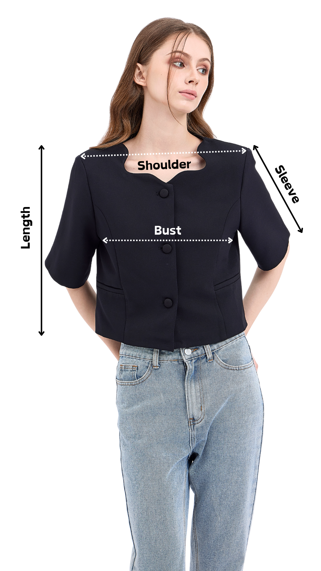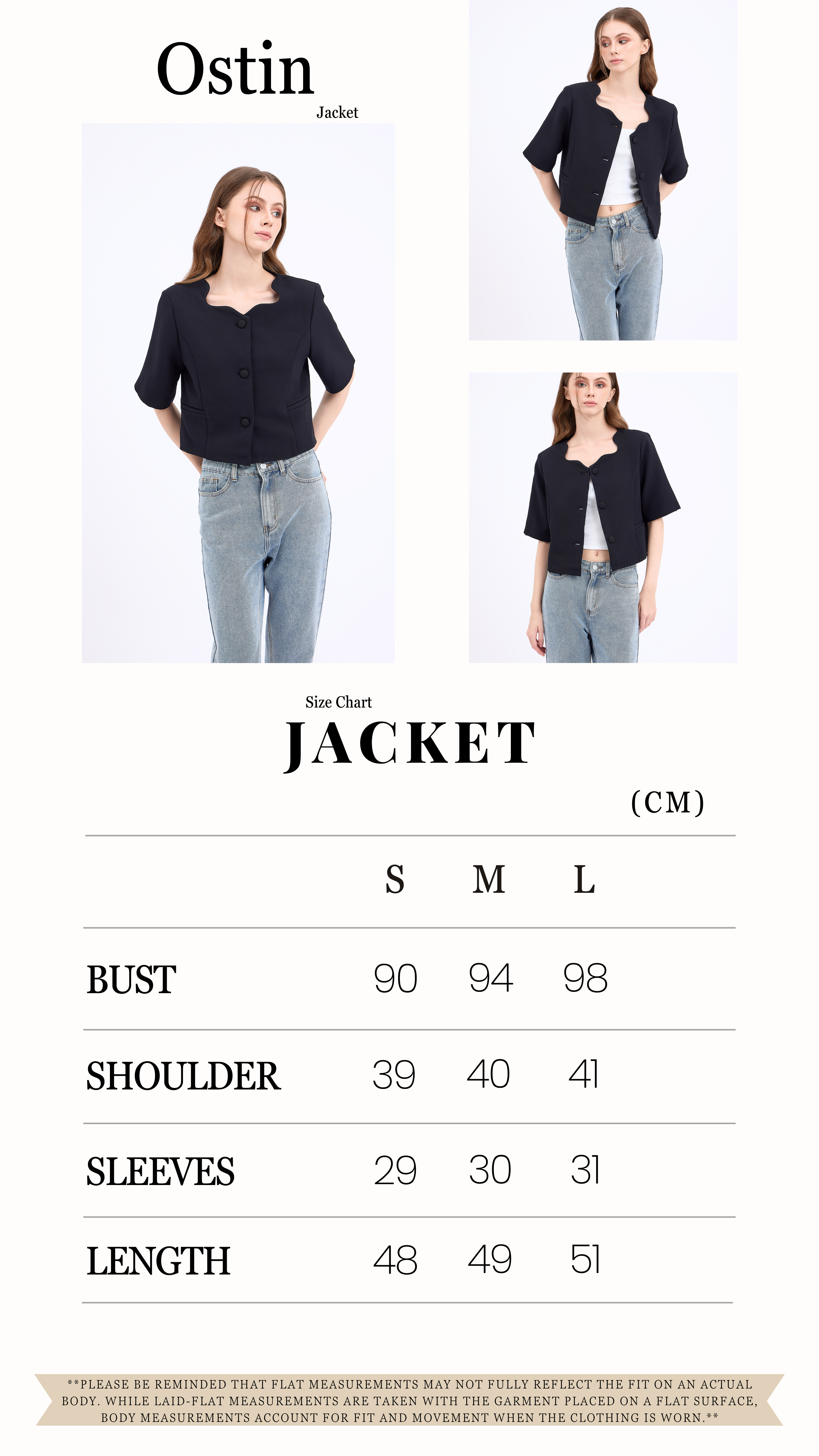The Ostin Jacket is a chic and contemporary piece that reimagines traditional tailoring with a modern twist. Its distinctive wave collar introduces a sculptural elegance to the neckline, while short sleeves add a relaxed, breathable touch—ideal for warmer climates or layered styling.