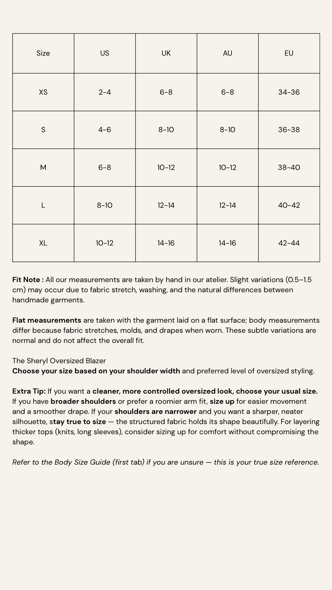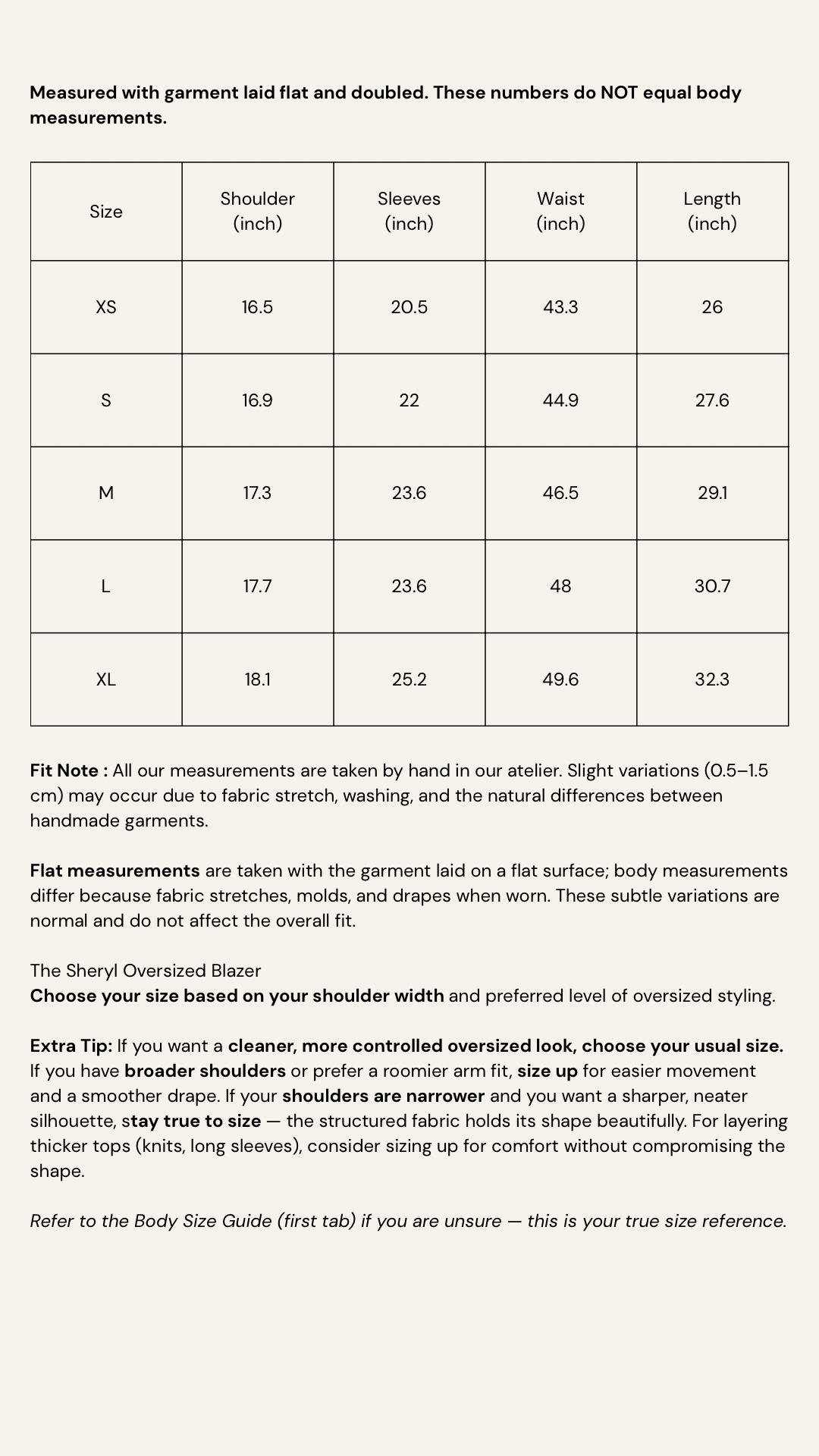 The Sheryl Pants are crafted from a lightly structured woven fabric designed to hold shape while offering comfortable ease through the hips and thighs. The tapered leg creates a clean, elongated line, while the high-waist cut adds polish and balance when paired with the Sheryl Blazer or worn on its own. Simple, refined, and versatile — a foundational piece for everyday dressing.