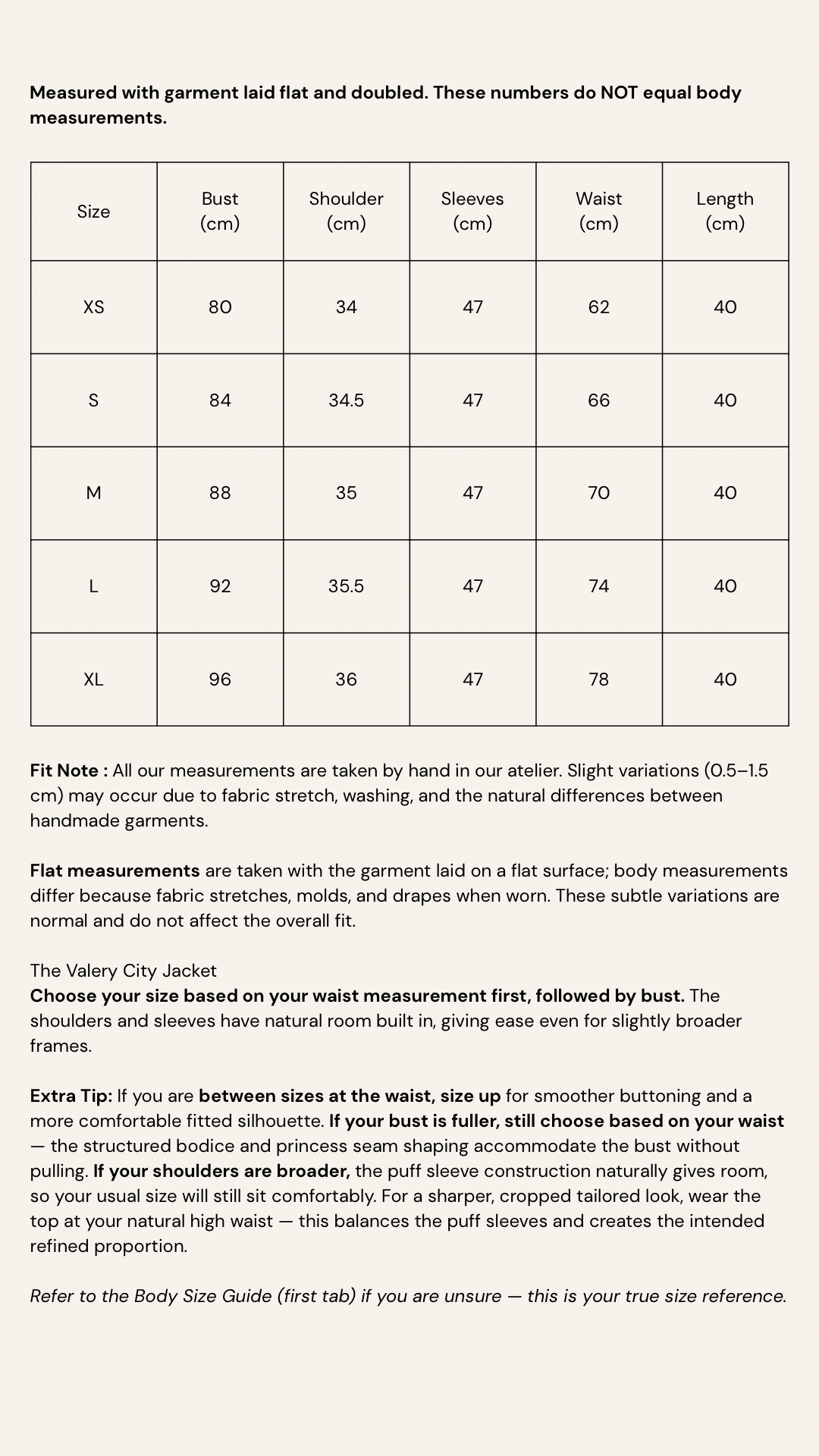 The Valery City Jacket is crafted from a lightly structured woven fabric that holds clean lines while remaining comfortable for all-day wear. The cropped cut defines the waist, while the sculpted puff sleeves and stand collar add a refined, modern shape. Finished with polished front buttons, this piece balances tailored structure with understated femininity — easy to style open or fully buttoned.