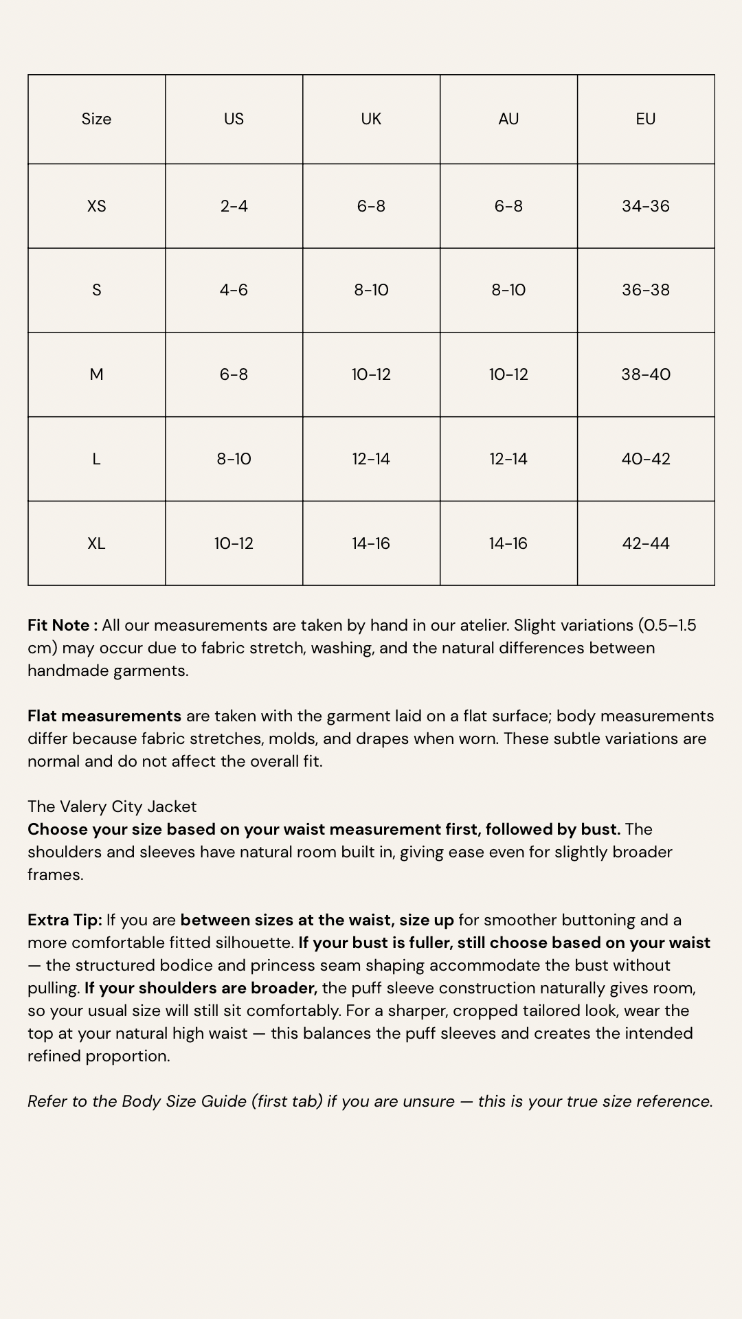 - Choose your size based on your waist, then bust